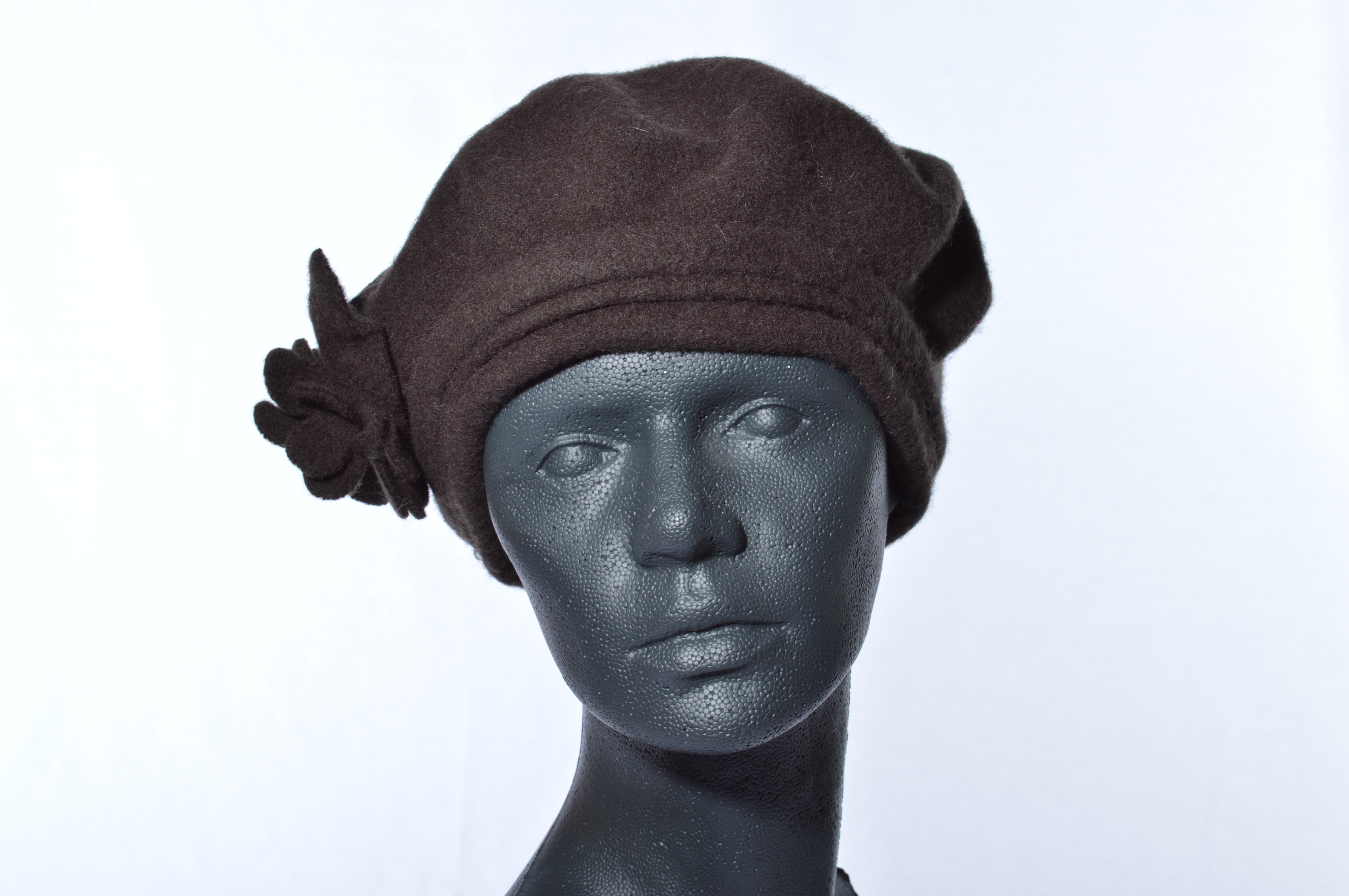 Een hoedje/beret van McBurn die volledig uit wol bestaat, toch mag ze met de hand gewassen worden.  Ze tailleert eerder klein van maat S tot en met maat M.